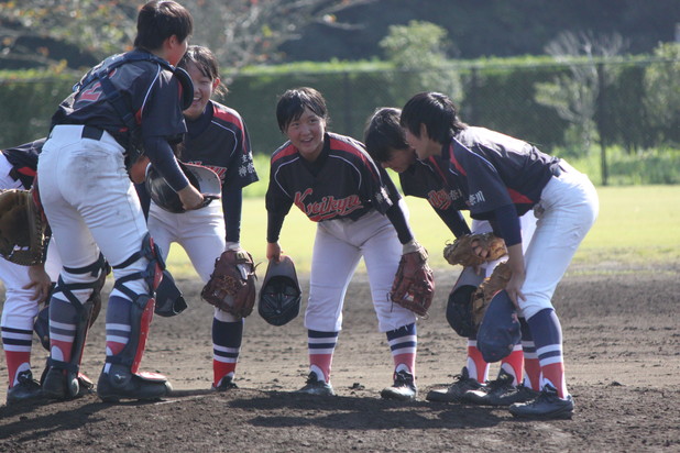 遊撃手:松本 理歩 レフト:黒澤 英 センター:八重尾 華雅